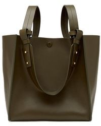 A brown leather handbag with a smooth surface and a simple design, featuring two gold-tone metal clasps on the front and two gold-tone metal rivets on the sides. The bag has a flat bottom and a straight, unadorned handle. | Sophie Hulme - Cube Small Handbag - Lyst | 980e47dcf21768f0ee68e7c37d2987db7baf8f92bc75380caf8a87bbdbcba973 | 001065752516 | 0 | 0 | 39 | 8 | 0 | 0 |