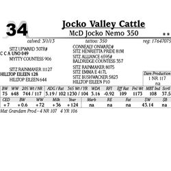 A detailed racing form for the Jocko Valley Catle race, featuring a list of horses with their respective numbers, names, and jockeys. The form includes information on the horses' past performances, such as their win-loss record, earnings, and other relevant statistics. The form is presented in a clear and organized manner, with each horse's information neatly arranged in columns and rows. | Lot 34 - McD Jocko Nemo 350 - Jocko Valley Cattle | ada687cd9777bb05a8e58b257928bc8f9aebb864571d8113d1ac72f46203ff25 | 001065752477 | 0 | 0 | 61 | 11 | 0 | 0 | |