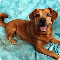 A brown dog with a happy expression is lying on a blue blanket. The dog has floppy ears and a visible tongue, which is sticking out of its mouth. The dog's fur is a mix of light and dark brown, and it appears to be well-groomed. The blanket has a textured surface and is placed on a surface that is not visible in the image. | Adopt A Pet :: Winnie Red (Penny) - St. Louis, MO | 14818727301ee9e43efcdfc87bddff20ca33edf84e606a0eb18b98da49e67ae5 | 001065743564 | 0 | 0 | 65 | 11 | 0 | 0 | |