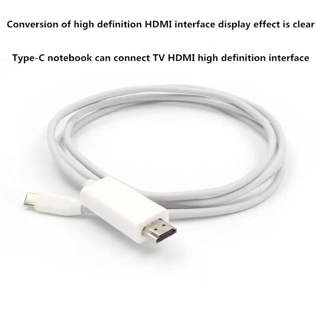 A white USB cable with a white connector is coiled on a white surface. The cable is labeled 'Type-C Notebook Can Connect TV HDMI High Definition Interface' and has a small black plug at the end. | USB 3.1 Type-c to HDMI adapter cable 1.8m supports resolution | 89af9ab1d7153d1368dc98ec4830d805387eae1686a3ba48202c3914e2db6409 | 001065743598 | 0 | 0 | 36 | 10 | 0 | 0 | |