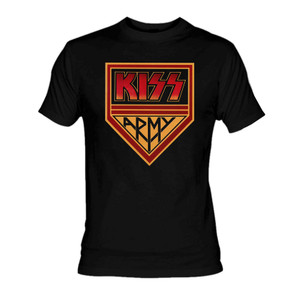 A black t-shirt with a graphic design featuring the word 'KISS' in red and yellow letters on a red background, with the word 'ARMY' in red letters below it, all on a red shield shape. The t-shirt is displayed against a white background. | KISS - Army Shield T-Shirt | e569e73d6e983c3b68734fb3ad2bdf0f6bd916fc8b030c352d7c76252754b951 | 001065754620 | 0 | 0 | 43 | 5 | 0 | 0 | |
