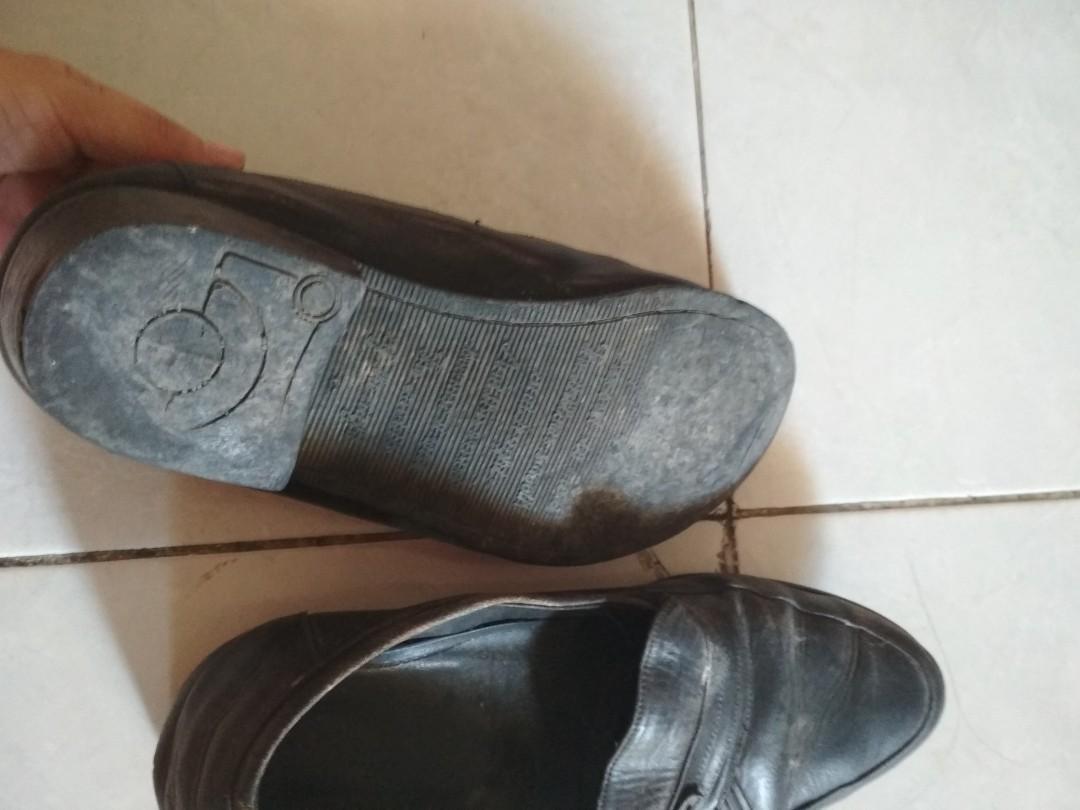 A pair of black, worn-out shoes with dirty soles and scuff marks are placed on a tiled floor. The shoes are turned upside down, with one shoe on its side and the other shoe with the toe pointing upwards. The shoes appear to be well-worn and in need of cleaning. | Sepatu Fantofel Cewek | 7b7fb67a3947b0a1d411759a1839ae79b444d6f7da4a7cec85e337a11004865b | 001065754625 | 0 | 0 | 50 | 3 | 0 | 0 | |