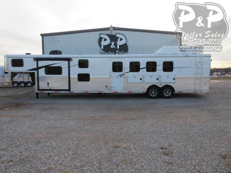 A white horse trailer is parked in an empty lot with a building in the background. The trailer has a black roof and is adorned with the logo 'P & P' on the side. The lot is covered with a mix of gravel and grass, and there are no other vehicles or objects visible in the scene. | 2020 Bison Trailers Ranger 8414RGLBHRSL 4 Horse Slant Load Trailer 14 FT LQ With Slides w/ Ramps | cb0f446413ac27b9317cb79f1627dbb7a088e7b6616922ee41d3c77ca5fdf414 | 001065754808 | 0 | 0 | 57 | 17 | 0 | 0 | |