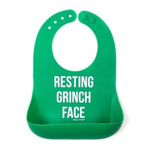 A green baby bib with a circular design on the front that reads 'RESTING GRINCH FACE' in white text. The bib has two adjustable Velcro straps at the back and is placed against a white background. | Bella Tunno Wonder Bib | Grinch Face | 2448e2055c7abed7542685f48f4b2f904f4f7f10900fe13ef50fcabf73735a64 | 001065755021 | 0 | 0 | 36 | 7 | 0 | 0 | |