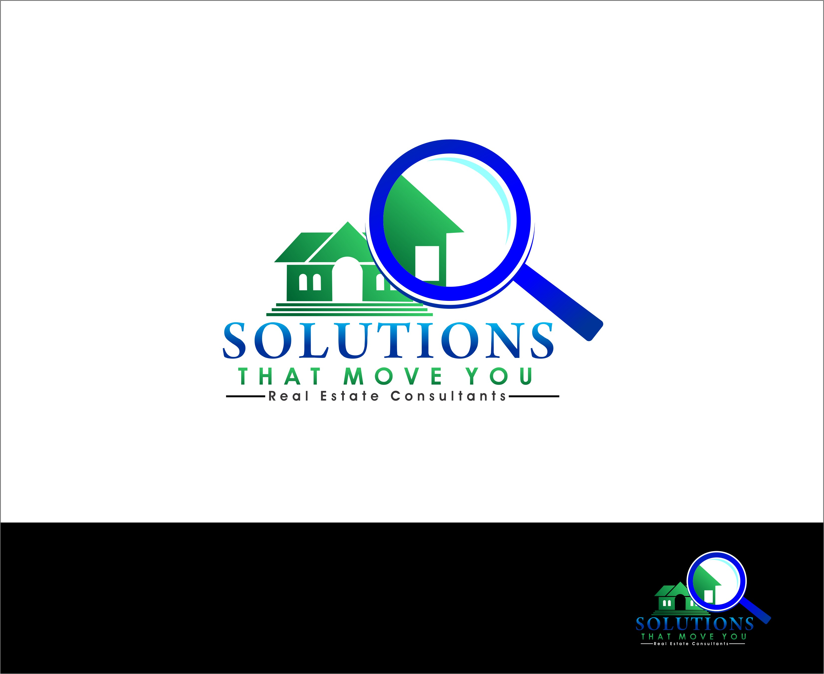 The second image is a stylized logo for a real estate consulting company called 'Solutions That Move You'. The logo features a blue magnifying glass with a green house in the center, symbolizing the company's focus on real estate. The text 'Solutions That Move You' is written in a modern font below the magnifying glass, with 'Real Estate Consultant' added to the right side. The background is a plain white color, and the overall design is clean and professional. | Logo Design by Mhon_Rose - Entry No. 35 in the Logo Design Contest Imaginative Logo Design for Solutions That Move You. | ee790635b4d31cf85929b9bda029562ac4fc87fcf82cb12c1d1ba67a74487855 | 001065755321 | 0 | 0 | 79 | 21 | 0 | 0 | |