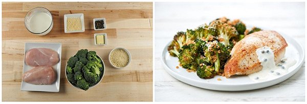 A close-up view of a plate with a piece of chicken topped with a blue sauce and broccoli florets. The plate is on a wooden surface, and there are various ingredients and dishes around it, including a bowl of chicken, a bowl of broccoli, a bowl of sauce, and a bowl of grated cheese. | Chicken with Green Peppercorn Sauce and Panko-Crusted Broccoli | a75280c40e44a845dcc26a70af06c18dda655698521041f4862054e42362d0c6 | 001065755731 | 0 | 0 | 54 | 8 | 0 | 0 | |
