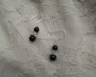 A pair of black onyx earrings with a silver hook is displayed against a white lace background. | Silver black tourmaline earrings | 4b327195a8c183535424ebcc1ae98050d58a8a7a2a8c918a8fa00fd34e9eeaac | 001065755811 | 0 | 0 | 17 | 4 | 0 | 0 | |