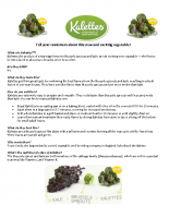 A flyer with a green background featuring the text 'KALATEES' in white at the top. Below, there is a heading 'Fall Greens and Root Vegetables' followed by a list of items in a smaller font. The list includes 'Kale', 'Spinach', 'Broccoli', 'Cauliflower', 'Brussels Sprouts', and 'Cabbage'. There are two images of green vegetables at the bottom of the flyer, one on the left and one on the right. The flyer has a yellow border around it. | Kalettes pm fact sheet | b58df19696ae26a4c6a93a990c1d27ac5da11790638eb90ae8e2924339f914cf | 001065755780 | 0 | 0 | 76 | 4 | 0 | 0 | |