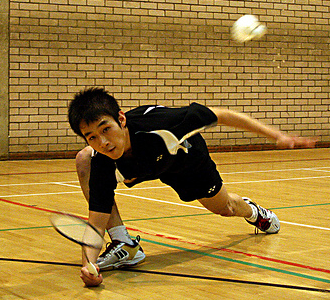 A male tennis player is in a dynamic pose on a court, reaching out with his racket towards a tennis ball in mid-air. He is wearing a black shirt, black shorts, and white tennis shoes. The court has green and red markings, and there is a brick wall in the background. | Triumphant firsts promoted as brilliant badminton season ends | 14b486169873e6060f81c0902cde0076d30826d8b1da893f6da99a1eb5aee8ec | 001229731288 | 0 | 0 | 51 | 8 | 0 | 0 | |