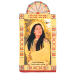A colorful illustration of a woman with long black hair, wearing a yellow dress with intricate patterns, and a golden halo above her head. The image is framed with a decorative border featuring red, yellow, and blue geometric shapes and patterns. The background is a plain light color. | Lynn Garlick Retablo St Kateri Pocket Saint | e9a7b0c43c7025a94776f294ad90548f9007fbbe04835415f3708f857684b7b5 | 001229731746 | 0 | 0 | 48 | 7 | 0 | 0 | |
