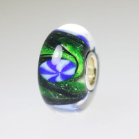A close-up image of a colorful bead with a glossy finish. The bead features a green and blue gradient with a pattern of blue flowers and green leaves. The bead has a shiny, reflective surface that catches the light, and it is set against a white background. | Green Swirl Bead | bebffc7e84d6440cd3d3245b1e9c4b0931290260b4b19f76684b97c4148e06f8 | 001229731657 | 0 | 0 | 47 | 3 | 0 | 0 | |