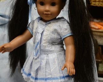 A doll with long black hair tied with blue ribbons is wearing a blue dress with a white collar and a blue bow on the waist. | 18 in doll clothes Cosplay Anime dress petticoat hat hair ribbons white blue | 70f15c470c6675889759e563d2d16f038fcc78791042438d817aaf9b2d089fc2 | 001229731189 | 0 | 0 | 26 | 13 | 0 | 0 | |
