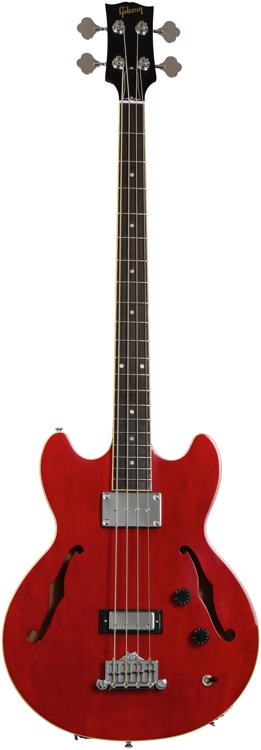 A red electric guitar with a white pickguard and silver tuning pegs is displayed against a white background. | Gibson Midtown Bass - Cherry image 1 | 0d7310a695385f1b95ec57443144d67511dcd25797773ada6e4fd619574610fc | 001229731790 | 0 | 0 | 18 | 7 | 0 | 0 | |