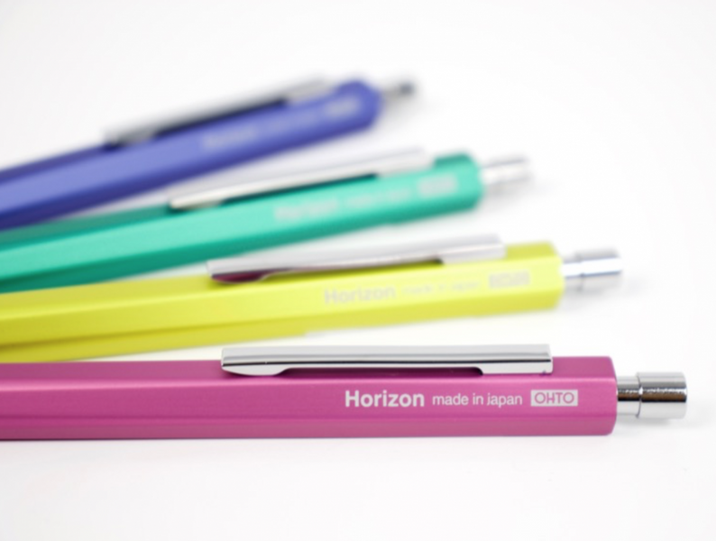 A collection of five pens with different colored bodies and silver tips are arranged in a row on a white surface. The pens are labeled with the word 'Horizon' and the number 'D10' in white text. The colors of the pens are, from left to right, purple, blue, green, yellow, and pink. | OHTO Horizon Superfin GEL PEN, Gul | 831b3649545091e06f7864322aeb025e1fafc77d5c40d2da3be3a4814e654c40 | 001229731619 | 0 | 0 | 52 | 6 | 0 | 0 | |