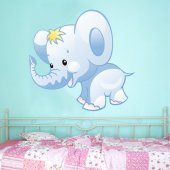 A whimsical illustration of a cartoon elephant with a star on its head is floating above a bed with a pink and white checkered comforter. The elephant has large ears, a smiling face, and is wearing a white tutu. The background is a plain light blue wall. | Wandsticker Elefant | eac168dfd17e7b3b19839d9821e02bc1bb89a102c261486348f787a5ecf7803b | 001229731774 | 0 | 0 | 47 | 2 | 0 | 0 |
