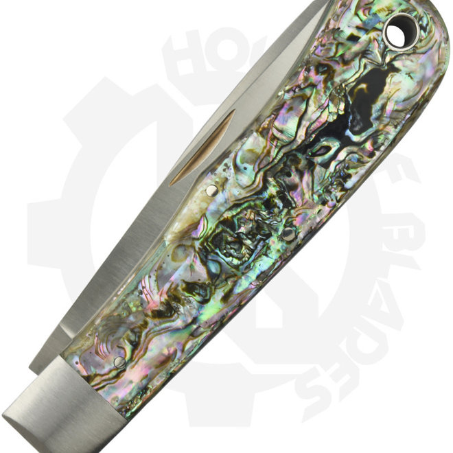 A close-up of a silver Swiss Army knife with a textured, iridescent handle featuring a pattern of swirling colors. The knife is set against a white background with a circular logo and text 'HOT' in the upper left corner. | W.R. Case Bullnose Trapper 10365 - Abalone (Manual Folding Knife) | 813b06cf3719498cf6e60ec6b1603cb27cb71ddb4eb7203fb0197da9c60da3c4 | 001229732315 | 0 | 0 | 39 | 10 | 0 | 0 | |