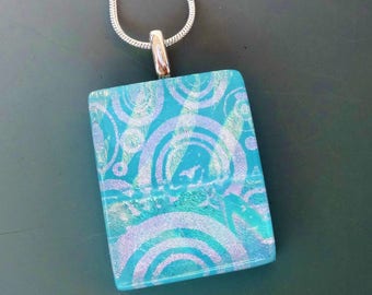 A close-up of a blue and white patterned keychain with a silver chain, featuring a circular design with concentric circles and a central dot. | Small Fused Glass Pendant, Petite Blue Glass Pendant, Dichroic Pendant, Square Glass Pendant, Glass Slide -Blue Glass Necklace | 976e6423f749ce74b7d68f68b5f8698add0e23809d44c3c5fbcd85769645b975 | 001229732220 | 0 | 0 | 24 | 18 | 0 | 0 | |