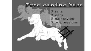 A stylized illustration of a dog with a cartoonish appearance, featuring exaggerated features such as large eyes and a wide, toothy grin. The dog is depicted in a playful pose with its front paws raised and its back legs stretched out. The background is a plain, dark color, and the image includes text at the top that reads 'FREE CANINE BASE' and below the dog, '9 Tails 7 Ears 5 Hair Styles 2 Expressions'. | FREE Canine Base bundle | d61e62be2bbd3f6fb16e21ca39382be46435264b4b8c70153eb6dff819bb7866 | 001229731856 | 0 | 0 | 74 | 4 | 0 | 0 | |