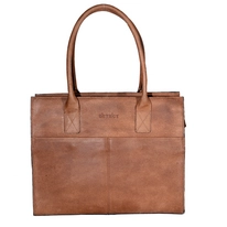 A brown leather briefcase with a strap handle and a buckle closure is displayed against a white background. The briefcase has a flap with a magnetic closure and a small pocket on the front. The interior is visible, showing a brown lining with a zipper pocket and a pen holder. The briefcase has a structured design with a flat bottom and a slightly curved top. | Laptoptas DSTRCT Fletcher Street Women's Business 15,6 inch Papa Cognac | 4ad3dbf1e833a4e57f914224d9052d34350711a5aa495b217f42f73463a94195 | 001229732389 | 0 | 0 | 65 | 10 | 0 | 0 | |