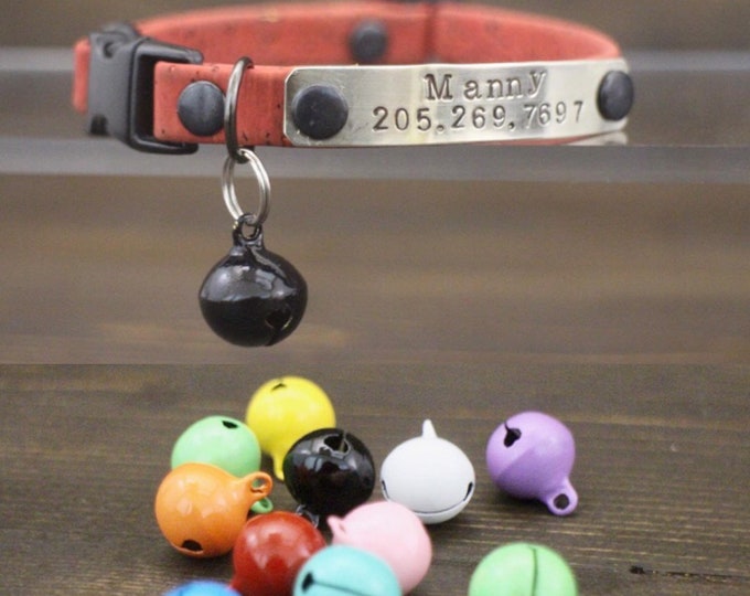 A collection of colorful beads and a silver dog tag with the name 'Manny' engraved on it are scattered on a wooden surface. | Cat bell - Cat collar bell - Pet accessories - Bells - Jingle bell - Solid color bell | 585b6b7ae8db185b5089ae552fe04f28785ba4ac06f5dc40173d5824dcc1853e | 001229732430 | 0 | 0 | 23 | 18 | 0 | 0 | |