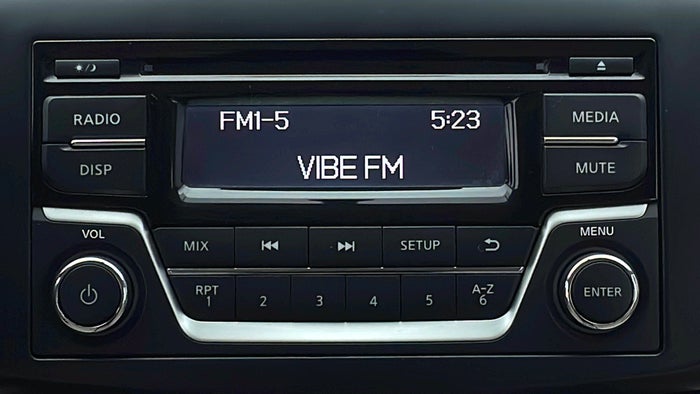 A close-up view of a car's dashboard with a radio display showing 'FM-5' and 'VIBE FM' as the station name. The time is displayed as '5:23'. The radio has various buttons and dials, including a volume control, a tuner, and a power button. The car's interior is predominantly black, with the radio display being the main ... | NISSAN SENTRA-Infotainment System | 6377cd7a8dd0baab998b7750dca304dc710c7d9c5b45093366289e1ee85fce4a | 001401440658 | 0 | 0 | 60 | 3 | 0 | 0 | |