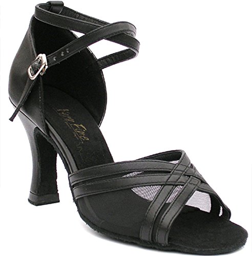 A black high-heeled sandal with a black strap that wraps around the ankle and a silver buckle. The sandal has a black toe cap and a black sole with a mesh-like pattern. | Open Toe Latin X-strap 3 Heel Black Leather | d608c692d111b07ee78b34f7a95bcfc4589add4449f2fb66dccb7c8bc65bc9a8 | 001401440794 | 0 | 0 | 32 | 8 | 0 | 0 | |