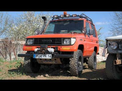 A rugged orange off-road vehicle with a black roof rack and a winch on the front is parked on a dirt road. The vehicle has a large bumper, round headlights, and a license plate that reads '35 TXK 74'. The surrounding area is barren with a few trees and bushes, and there is another off-road vehicle partially visible in ... | second-hand Toyota Land Cruiser | 01737041a819f67aadf945cc1c0f5683eb6461168d9557a4d88b86385b241d46 | 001401440961 | 0 | 0 | 61 | 4 | 0 | 0 | |
