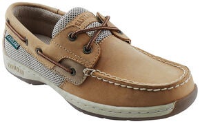 A pair of brown leather boat shoes with a lace-up front, a metal eyelet, and a woven tongue detail. The shoes have a textured sole and are placed against a white background. | Eastland Women's Tan Solstice Boat Shoe Oxfords , Tan, hi-res | 5b788fd7a0ed99d92d622c8497ad4c1856da3e22e202ea573a018694b24e5c9a | 001401441016 | 0 | 0 | 32 | 10 | 0 | 0 | |