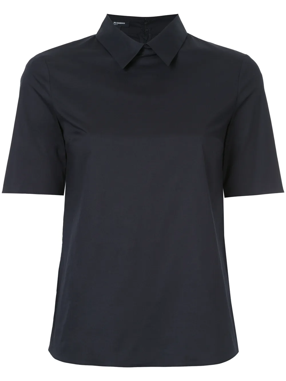 A black polo shirt with a collar and buttoned placket, featuring a fitted silhouette and a plain front. The shirt has a tag on the collar indicating the size and brand. | Jil Sander Navy shirt T-shirt - Black | 2e31dad7d0914f775c2dc1ba9bed855e3ce3fd5a22e9f5db2fedadcdc654be0f | 001401440067 | 0 | 0 | 31 | 7 | 0 | 0 | |