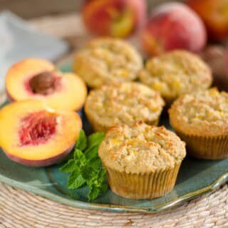A plate with a variety of muffins and a sliced peach is on a wicker table. The muffins are golden brown and appear to be freshly baked. There are three muffins on the left side of the plate, two in the center, and two on the right side. The sliced peach is on the left side of the plate, with a piece of mint leaf placed... | 6 Paleo Peach Recipes to Make Now | 5c96d943575157cb51b26b9cf4cd0d691e62a8640129bc6fc2ac3ae789a79dae | 001401442077 | 0 | 0 | 80 | 7 | 0 | 0 | |