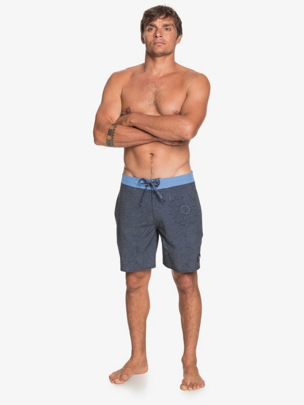 A man with a muscular build is standing barefoot on a white background. He is wearing dark blue shorts with a blue waistband and a small logo on the left leg. The man has a tattoo on his left forearm and is looking directly at the camera with a serious expression. | Wildflower 18" - Beachshorts for Men EQYBS04448 | 6739389a0b33bb0a22ab4fe3f885def98d3563e97dd48643de527f9f06249976 | 001401441883 | 0 | 0 | 51 | 7 | 0 | 0 | |