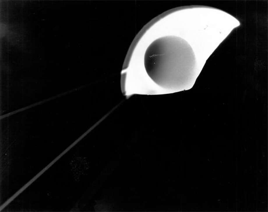 A black and white photograph of a circular object with a bright light source behind it, creating a lens flare effect. The object appears to be a part of a larger structure, possibly a building or a piece of equipment, with a dark background that suggests it is nighttime. | This P-I archive image is said to be a flying object that passed over the Greenwood neighborhood on Oct. 16, 1973. It was not published in the Post-Intelligencer. (seattlepi.com file) | a3ba37161dac6babb178cb37cee1ea1056944cd7c6b694f46269af5bfc6d9362 | 001401442298 | 0 | 0 | 49 | 30 | 0 | 0 | |