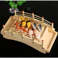 A wooden sushi train with various sushi pieces displayed on it. The train has a curved track and is placed on a dark surface. The sushi pieces include nigiri with toppings such as salmon, tuna, and shrimp, as well as maki rolls with different fillings. There are also decorative elements like a small bonsai tree and a b... | Wooden sashimi platter 1pc White wood sushi bridge sushi dish Korean cutlery Japanese cuisine platter wooden arched bridge | 4ba4f2d38aa304b05c26523d0dcff6dd3d89f6456ca3a137f7c04f2a8cc39d15 | 001401442380 | 0 | 0 | 59 | 18 | 0 | 0 | |