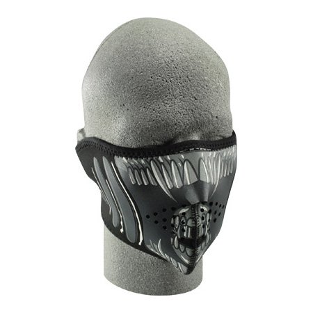 A black and gray mask with a unique design featuring a large, open mouth with teeth and a patterned eye area is displayed against a white background. The mask is mounted on a gray stand, and the image is well-lit with a softbox light source. | Zan Headgear Alien Men's Half Face Mask Street Racing Motorcycle Helmet Accessories - One Size Fits All | d9e27eed4cbad8f21f634e5f321512a25e1fab9971585ecef73f1820878aa578 | 001401442470 | 0 | 0 | 45 | 17 | 0 | 0 | |