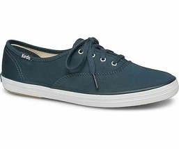 A pair of blue canvas sneakers with white soles and laces is displayed against a white background. The sneakers have a classic design with a round toe cap, a low-cut profile, and a single white stripe on the side. The brand 'Keds' is visible on the side of the left shoe. | Keds WF58938 Womens shoes Champion Sateen Dark Green, 8.5 Med - $29.65 | 12972dd34105a468e26d5e92c69a171ef3d97952028a96ca8231e3beeae9fa1a | 001401442450 | 0 | 0 | 51 | 12 | 0 | 0 | |