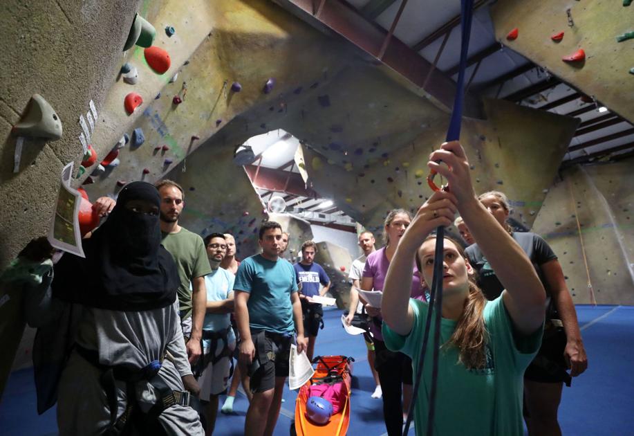 A group of people is standing in a climbing gym with various climbing holds on the walls. A woman in a teal shirt is holding a blue rope, and there is a red and orange bag on the floor. The gym has a blue floor, and there are people wearing climbing gear and carrying backpacks. | UTMB plans world's second extreme medicine program | 642b57c1610956309e98f48434eb8e3a4a897ed1442ee3aa3bc026eb863d05a7 | 001401442530 | 0 | 0 | 55 | 7 | 0 | 0 | |