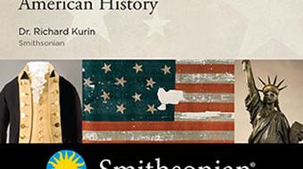 A book cover with the title 'American History' and the author's name 'Dr. Richard Kurin' at the top. Below the title, there is an image of a flag with a torn corner, a statue of liberty, and a black and gold coat of arms. The bottom of the cover features the Smithsonian logo and the tagline 'Smithsonian'. | Experiencing America: A Smithsonian Tour through American History - DVD, digital video course course image | d67c97ef9841e70d7ce42323264a657707ac0b3865aaa6a6690381b7e8c6e3d9 | 001401442514 | 0 | 0 | 57 | 15 | 0 | 0 | |