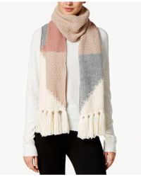 A person is wearing a white long-sleeve top with a multicolored knitted scarf draped over it. The scarf has a mix of pink, blue, and white stripes. The person is also wearing black pants. | Vince Camuto - Intarsia Fringe Muffler - Lyst | 69098cf01f4ae55b58d68853577e09fefc9671b9920101389010e93f4f4b1d11 | 001401442853 | 0 | 0 | 34 | 8 | 0 | 0 | |