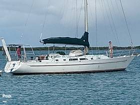 A white sailboat with a green sail is docked in calm waters. The boat has a small cabin with a white roof and a black rail. There is a person standing on the left side of the boat, wearing a red shirt and black pants. The water is clear, and the sky is partly cloudy. | Tayana 52 Aft Cockpit Cutter, 52, for sale - $129,000 | eb19d2bfce8c368ff5d9011b44f95a81b34f2d15833730341e92d9f9c0159908 | 001401442849 | 0 | 0 | 55 | 10 | 0 | 0 | |