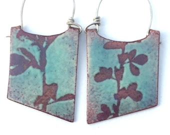 A pair of earrings with a greenish hue, featuring a leaf design, are displayed against a white background. | Blade Enamel Earrings - OOAK - Hand painted botanical motif - N. 6 | f67d7ed1e87fd9aa9b2fe3dfb16a734bd4c55b65af352de41df8ed1cc060be88 | 001401442933 | 0 | 0 | 18 | 13 | 0 | 0 | |