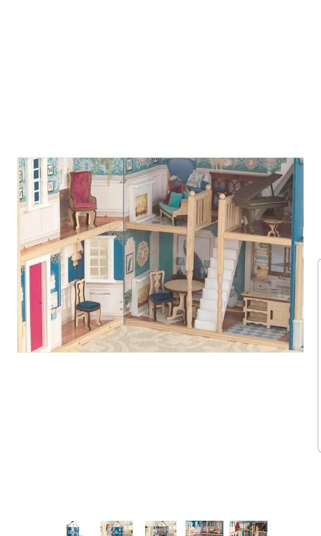 A detailed illustration of a dollhouse with multiple rooms and furniture. The dollhouse has a blue and white color scheme with a pink door on the left side. The rooms include a living room with a red chair, a dining area with a blue chair, a kitchen with a blue refrigerator, a bedroom with a blue bed, and a bathroom wi... | RARE KidKraft 50th Grand Anniversary Giant Jumbo Extra Large Wood Wooden Dollhouse Doll House with Furniture | e3d84de6d1e5d04f9d2b9c16b7e81f0b7c07ee55e0725a6f26057c889deffc2d | 001401443933 | 0 | 0 | 86 | 16 | 0 | 0 | |