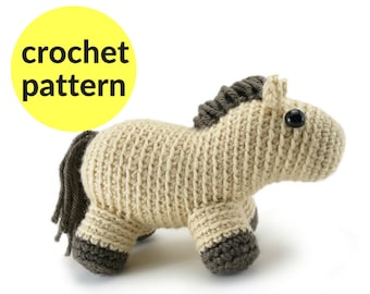 A small, knitted horse toy with a textured mane and tail, and a black eye, is displayed against a white background with a yellow text overlay that reads 'CROCHET PATTERN'. | Horse amigurumi pattern - horse crochet pattern, cute amigurumi, horse crochet pattern, easy amigurumi, pony crochet, pony amigurumi | 0472eca0ffdb063c8466a3152726881fbe02cff0e342c89c103df102af66c62f | 001401444089 | 0 | 0 | 30 | 18 | 0 | 0 | |