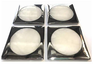 A set of four identical, round, white ceramic tiles with a glossy finish, each with a black border, is arranged in a square formation on a white background. | Rab Labs Anna New York by Rablabs Bianco Circulo Coasters | 6c9dc4622caaadb00c954803b990163a179b2cb514258b8bebc5d49649e682ce | 001401444983 | 0 | 0 | 28 | 10 | 0 | 0 | |