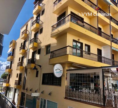 A yellow building with balconies and a restaurant on the ground floor. The building has a sign with a fish logo and the word 'YVM' on it. There are tables and chairs outside the restaurant, and a potted plant on the balcony. | Apartment Los Cristianos, Arona | 393c98fbece8df11c73bb59f67f56317b493a7878fa029c1a28ab592b2baefc9 | 001401444858 | 0 | 0 | 42 | 4 | 0 | 0 | |