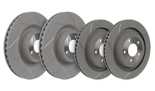 A set of four brake rotors is displayed against a white background. Each rotor has a different design, with varying patterns and textures. The rotors are arranged in a vertical stack, with the top rotor being the largest and the bottom rotor being the smallest. | Steeda Mustang Slotted Brake Rotor Kit Performance Pack (2015) GT 555-6026 - steeda 2015 slotted brake rotors | efd3edb931d093ecedffcc240c348999da6f0d81acb1884ffd7943e277bf3c27 | 001401446250 | 0 | 0 | 45 | 17 | 0 | 0 |