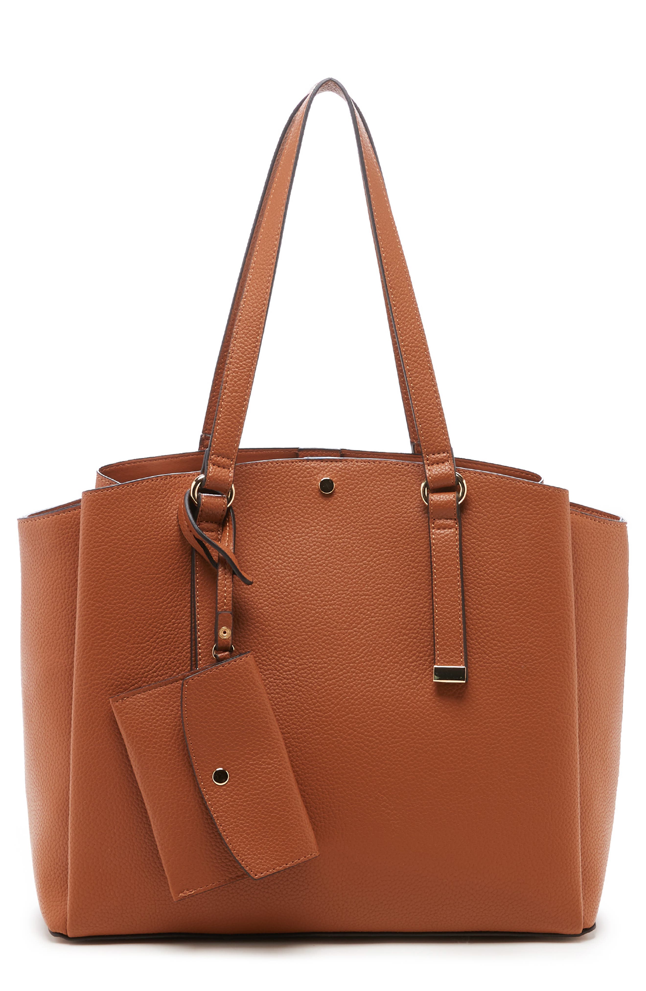 A brown leather tote bag with a long strap and a small tag attached to the front. | Fira Faux Leather Tote by Sole Society | 0320b1be63208e5faf7d8a83a46029de531eb298809c8b256012d4513c7cc885 | 001401446217 | 0 | 0 | 17 | 7 | 0 | 0 | |