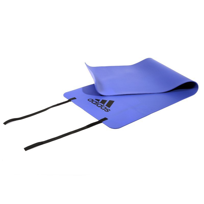 A blue yoga mat with the brand 'adidas' printed on it is laid out on a white background. The mat has a wavy edge and is rolled up at one end, with the rolled-up portion on the left side. | ADIDAS MATA FITNESS 6 MM FIOLETOWA ADMT-12234PL | ba3dd69560b84351b0a34a4ef1c1c4c2181757f8dc524c84691196cafd72c77b | 001401446048 | 0 | 0 | 39 | 7 | 0 | 0 | |