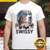A mannequin wearing a white t-shirt with a graphic design of a dog's face and the word 'Swissy' in a decorative font. The background features a festive holiday setting with Christmas decorations, including a wreath and a garland with red berries. | Womens Swissy Mom Swiss Mountain Dog Mama Floral Shirt | 7f0c690624c294d8725259bf251486f087c4f08aa0a9adb865e7bf8dc8e2a0c4 | 001401446105 | 0 | 0 | 41 | 9 | 0 | 0 | |