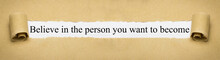 A white paper with the text 'Believe in the person you want to become' is attached to a brown surface with a paper clip. The paper is partially torn at the top right corner, and the text is centered on the paper. | Believe In The Person You Want... | 1789cc9efc277000e5deeaebf4c177658c251fbccf8e29599a8cc89d21dc49ed | 001401446289 | 0 | 0 | 42 | 6 | 0 | 0 | |