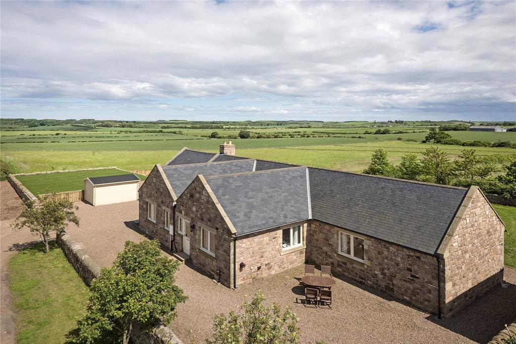 A quaint stone cottage with a dark grey slate roof is surrounded by a lush green landscape. The house has two gabled sections with a chimney between them. A wooden bench is placed outside the front door, and a stone wall runs along the left side of the property. The sky is partly cloudy, and the surrounding fields are ... | 5 Bedrooms Detached House for sale in Adderstone Mains Cottages, Belford, Northumberland | 7649cdf471719901b3e4c65dc808cc47e16f561ee236f8ec66c860c7fcfd5da0 | 001401446285 | 0 | 0 | 62 | 12 | 0 | 0 | |